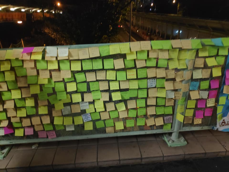 【逃犯条例】多区现“连侬墙” 天桥贴满便利贴