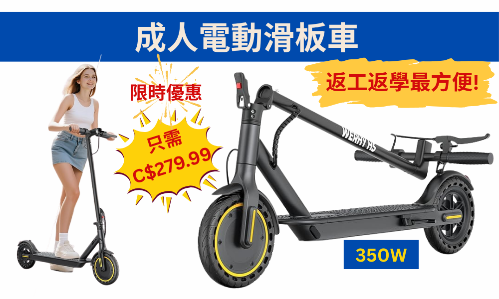 【JETSO 推介】成人電動350W滑板車~限時優惠只需C$279.99!