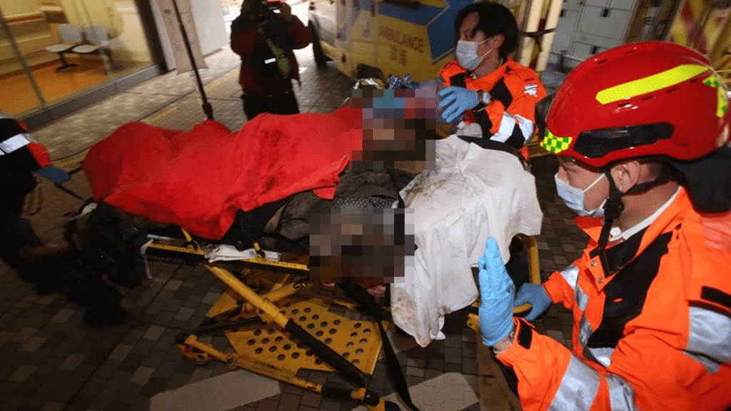大埔宏福苑今日(26日)发生五级大火,酿成至少12死16伤,当中包括一名消防员。有宏昌阁低层住户被困,一度向外求救,约3小时终于救出,他被困时曾表示“我开唔到门㗎喇,两边走火通道都着晒火,一开门啲浓烟就会攻入嚟”,更指“烧死应该唔会嘅,最多吸入浓烟死㗎啫。”