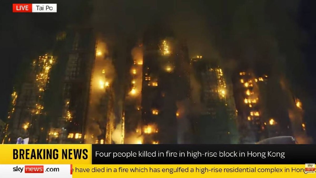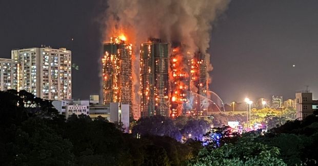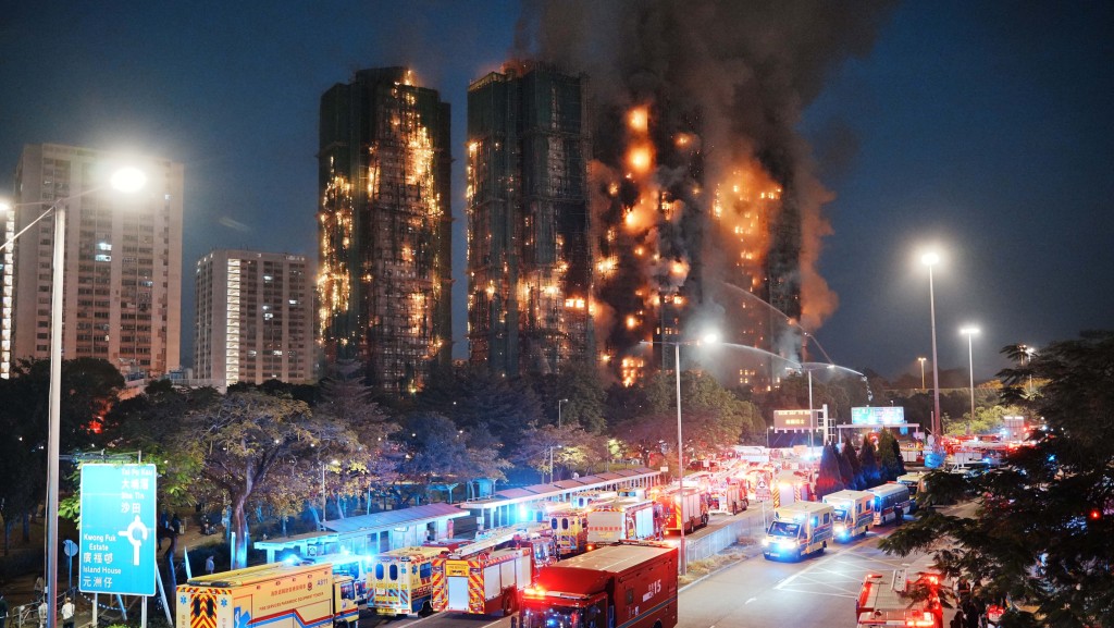 【星岛综合报道】香港大埔宏福苑发生五级大火,宏昌阁外墙棚架率先起火,其后火势蔓延至宏泰阁及宏新阁等多座大厦,造成多人死伤,并有一名消防员殉职。事故发生时屋苑正进行大维修工程,外墙长期搭建棚架及保护网,相关工程背景成为社会焦点。