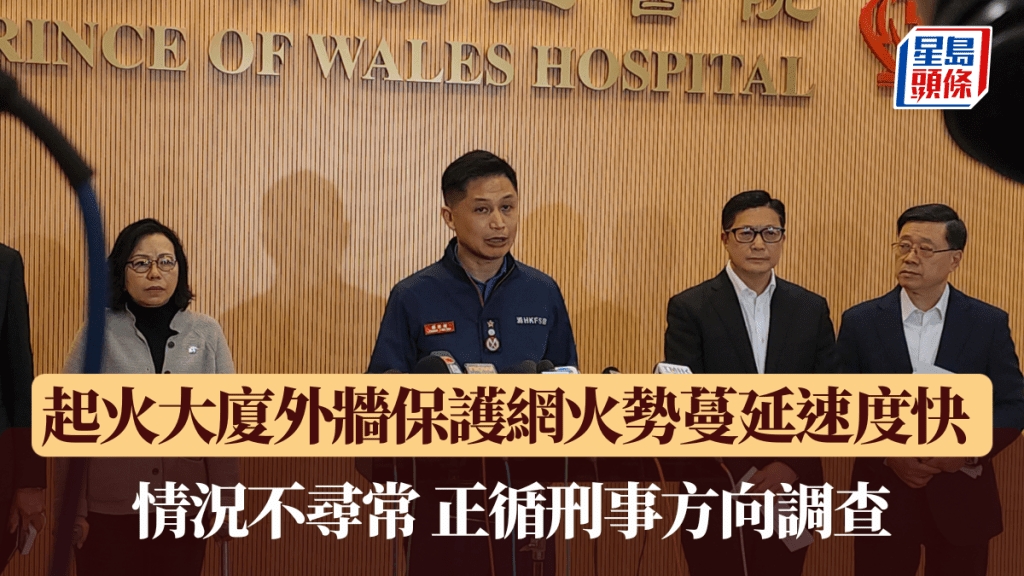 周三(26日)在大埔宏福苑發生的五級奪命大火,死亡人數增至36人,279人仍然失聯;另外有29人留醫,其中7人危殆。保安局局長鄧炳強及消防處處長楊恩健指,大廈外牆物料燃燒及蔓延速度明顯較快,認為情況不尋常,將展開刑事調查。