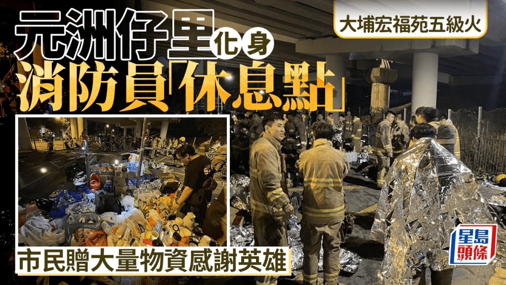 大埔宏福苑五级火|元洲仔里化身消防员“休息点” 市民纷赠物资感谢救火英雄