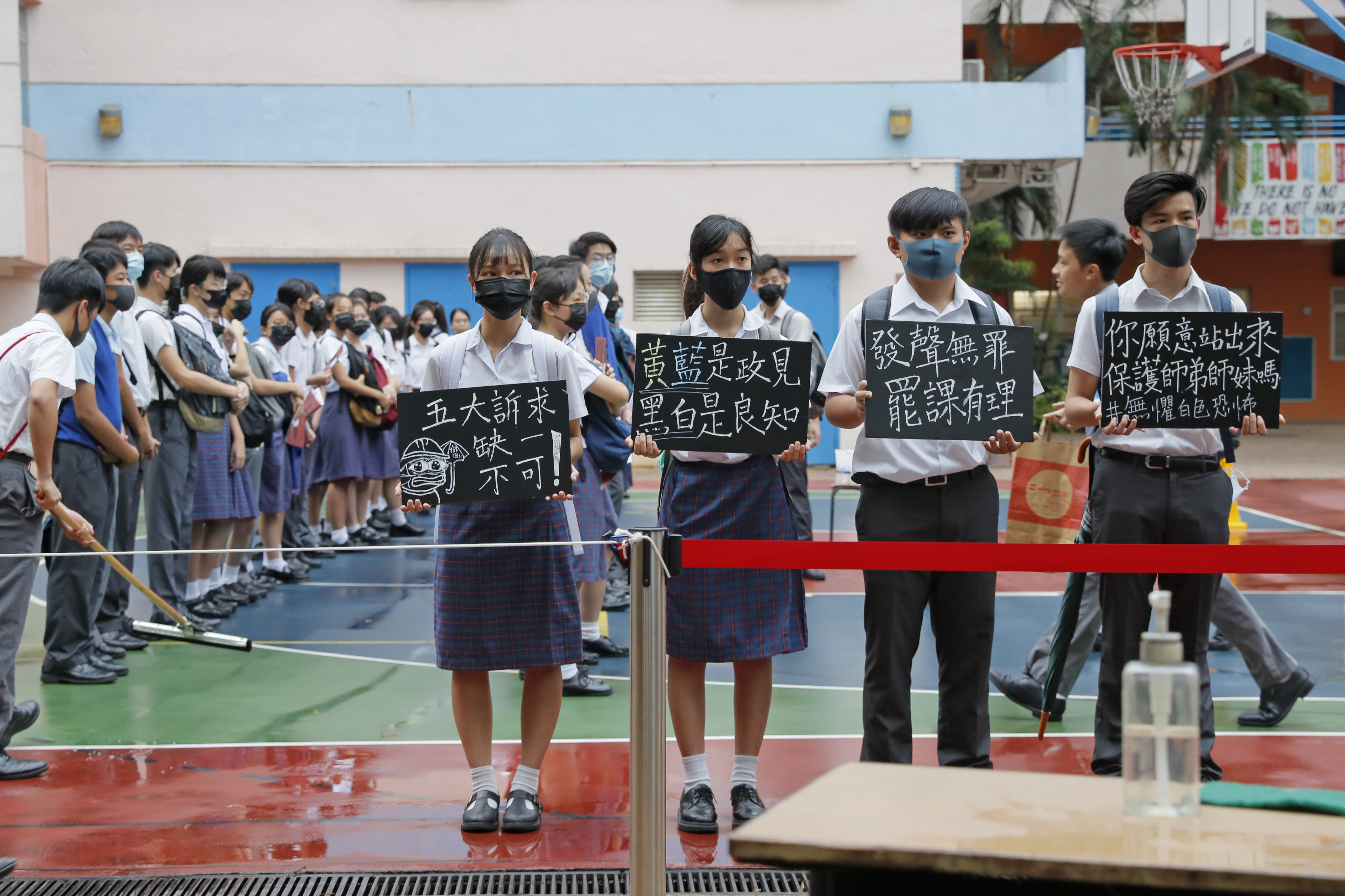 (星島日報報道)持續三個月的反對修訂《逃犯條例》風波,蔓延至新學年的開學日,全港約一半的中學,共二百三十校有學生及校友發起罷課等行動,表達訴求。大批學生昨在狂風暴雨下參與罷課集會,主辦單位聲稱四千人出席,警方則指最高峰有七百七十人。教育局局長楊潤雄再度呼籲校外力量或人士,不應到學校作騷擾或煽動,又擔心近期網上有不負責任的欺凌言論,重申對校園欺凌零容忍。