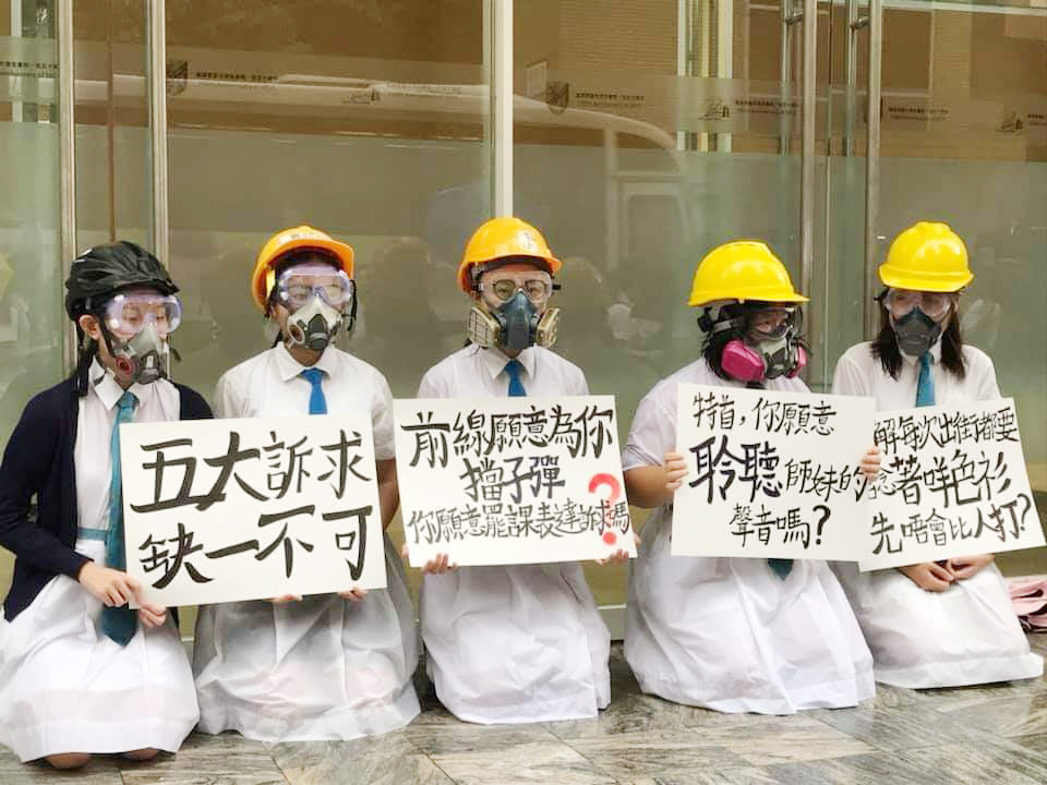 【逃犯條例】林鄭母校嘉諾撒聖方濟各書院 有學生戴頭盔下跪籲罷課