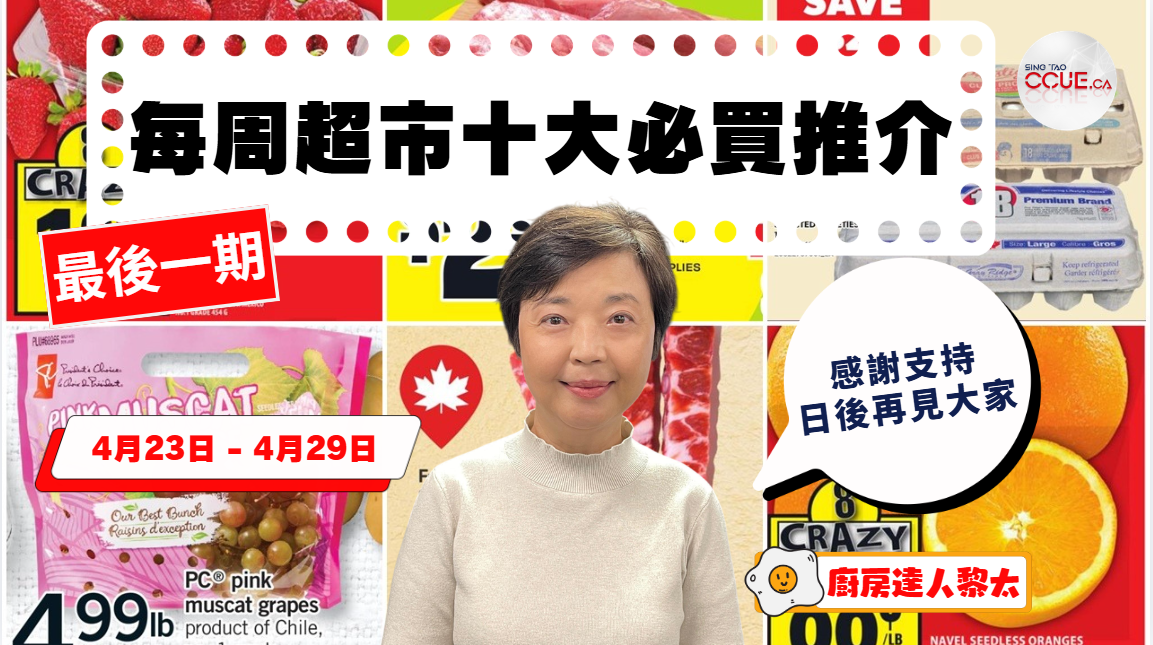 【精明消費】「每周十大精選」已經陪伴大家三年多,今期迎來最後一期了;而「多倫多黎太廚房」,帶著不時不食、善用多倫多食材的理念出發,製作了很多簡易食譜、也會在4月25日走到最後一期。在此真心感謝你們的支持,希望日後會用其他形式再見大家。