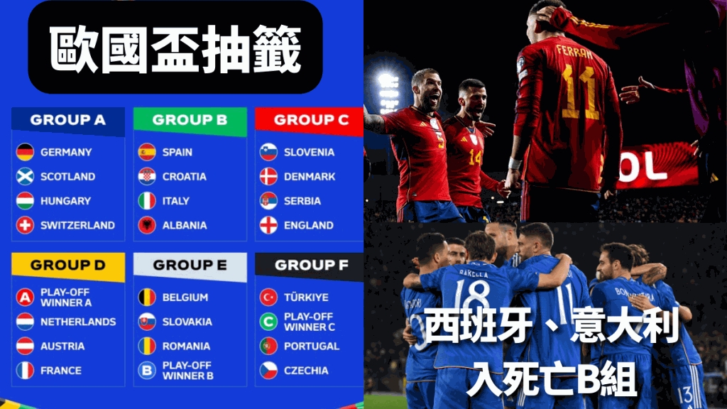 歐國盃抽籤│西班牙、意大利、克羅地亞入「死亡B組」 同場加映兩列強又同組