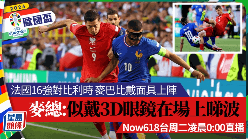 欧国杯|法国16强对比利时 麦巴比指戴面具落场似戴3D眼镜睇波