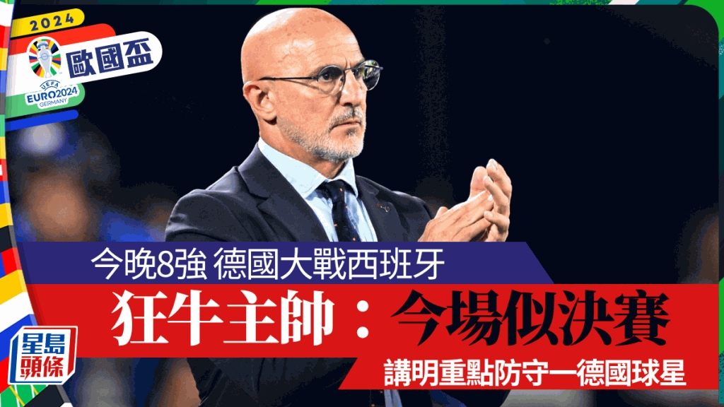今晚欧国杯8强将由两支冠军大热西班牙和德国正面交锋。两军今届赛事同样态勇,狂牛主帅迪拉富恩特也直言今场本来似是决赛戏码。他更讲明要严防德军中场大脑却奥斯,甚至笑言希望可绑住对方双脚。(Now688、618台周六凌晨00:00直播)
