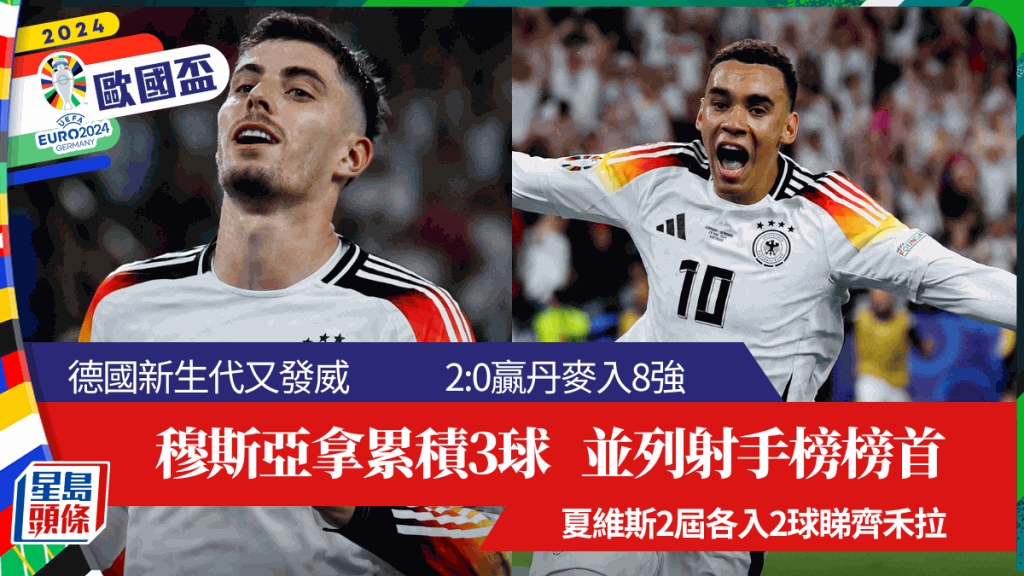 欧国杯│德国新生代又发威 穆斯亚拿再入波争神射手 夏维斯2届各入2球睇齐名宿