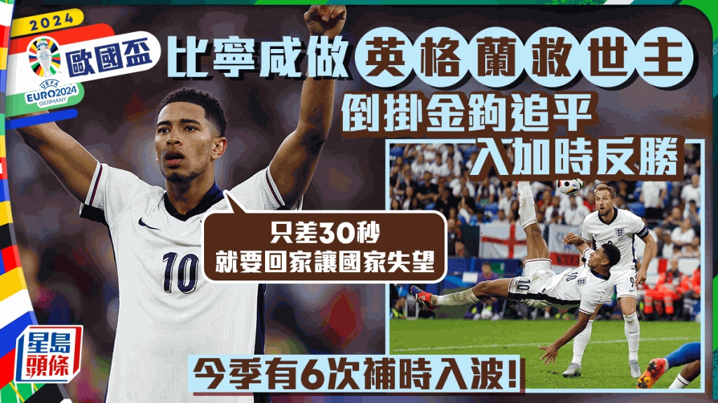 周日欧国杯16强,英格兰战至94分钟仍然落后,准备出局之际,祖迪比宁咸充当救世主以倒挂金钩建功追平1:1,最后英军更加时后2:1淘汰斯洛伐克。比宁咸赛后也直言只差30秒就要提早回家,认为这是其生涯最重要入球之一。事实上,此子今季6次补时阶段士哥,名符其实是关键先生。