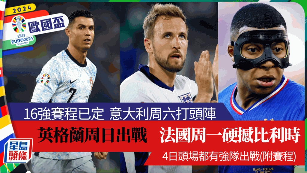 当中意大利和东道主德国在周六晚率先出战,前者会在深夜12点对小组赛表现惊喜的瑞士;德国就会在凌晨3点迎战由基斯甸艾历臣领军的丹麦。擂台趸英格兰就在周日头场上阵,大战斯洛伐克,尾场就轮有分组3战全胜的西班牙,对奇蹟晋级的格鲁吉亚。