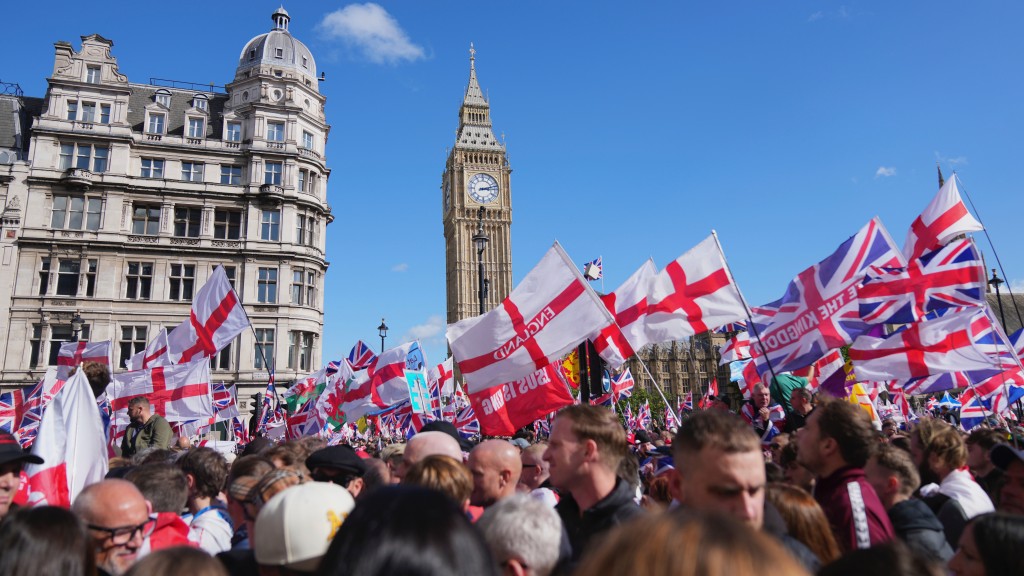 伦敦逾10万人参加右翼游行 反非法移民涌入英国 约1600名警员戒备