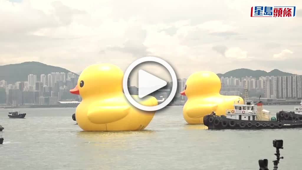 (視頻)黃鴨訪港|巨型黃鴨打孖現身灣仔充氣 明早進行啟航禮進駐中環|多圖