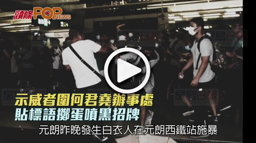 示威者圍何君堯辦事處 貼標語擲蛋噴黑招牌