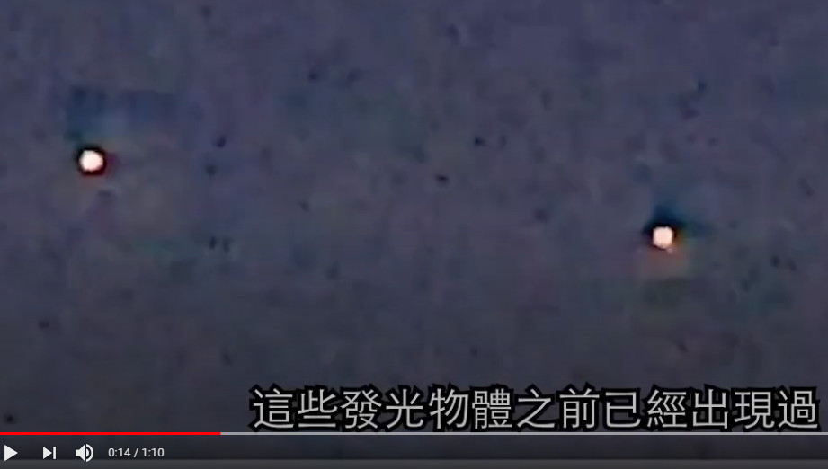 從片段可見,有5個發光的物體在半空中停留。片段拍攝者在片中向友人表示,這些發光物體之前已經出現過。但友人覺得難以置信,反問這些發光物體是否孔明燈。拍攝者則認為,光點距離自己很遠,孔明燈並沒有這麼大。